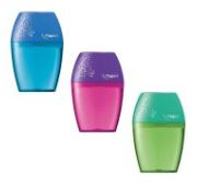 Отверстие позволяет заточить карандаши диаметром 8 мм. Фирменное лезвие Maped обеспечивает качественную и точную заточку. Корпус изготовлен из высококачественного ударопрочного пластика с контейнером для стружки. Поставляется в ярких цветах ассорти (без возможности выбора). Контейнер для стружки надёжно крепится к точилке.